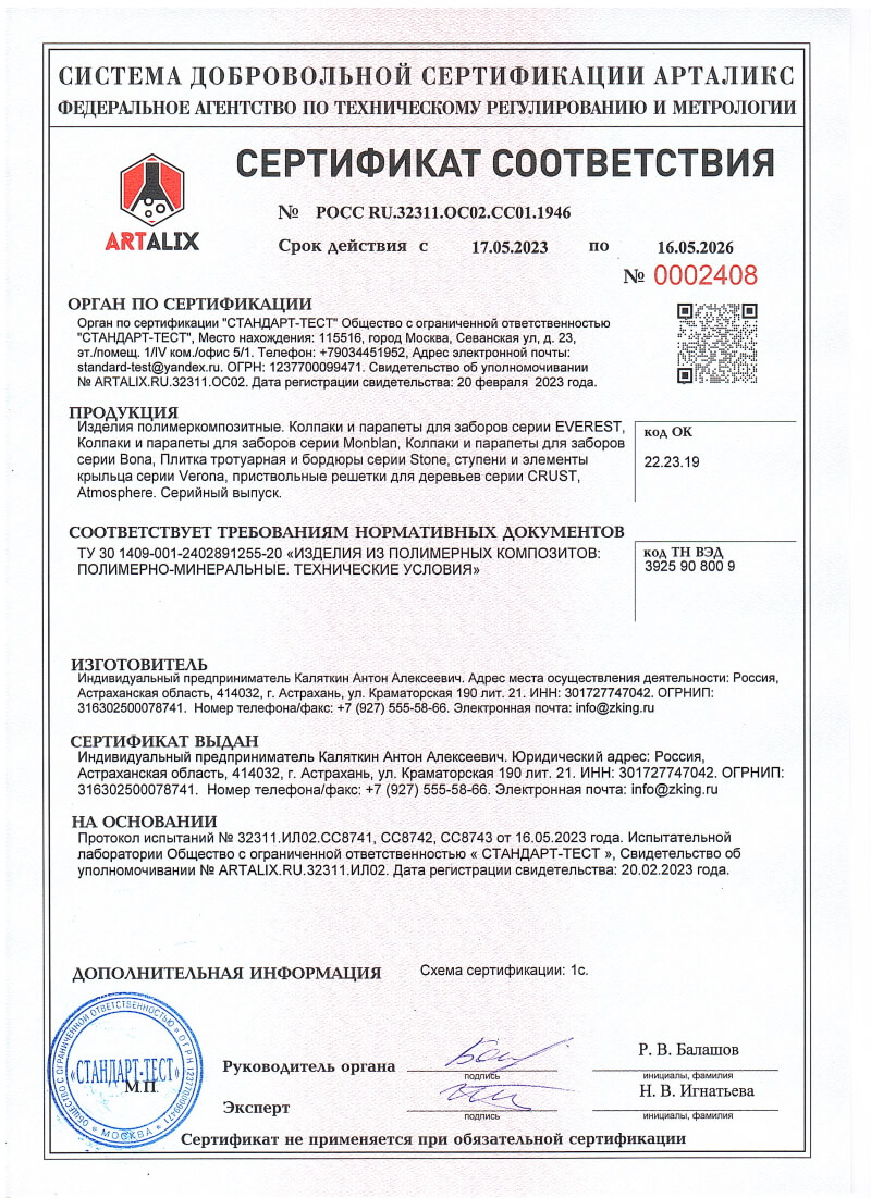 Колпаки и парапеты ZKING полимерпесчаные